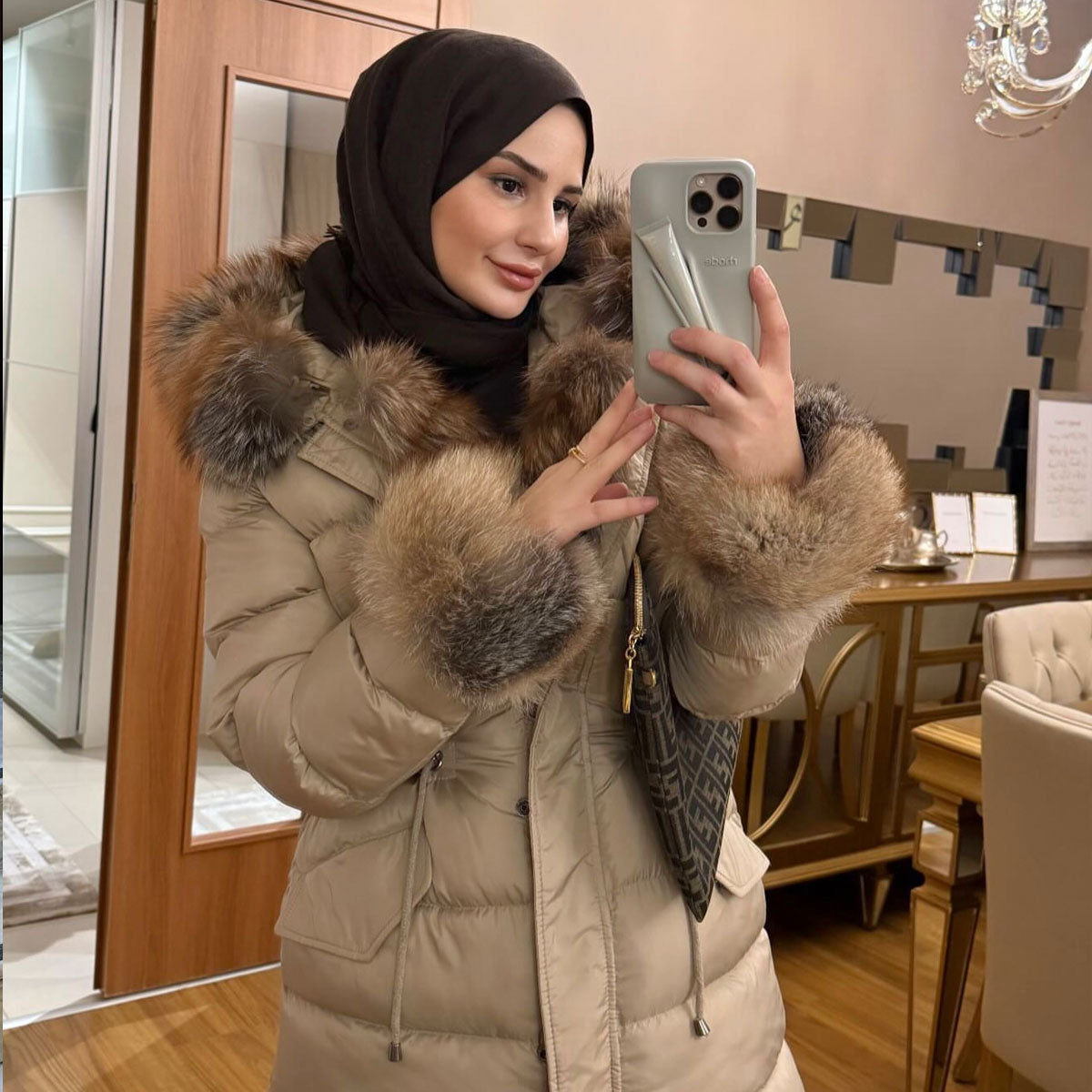Kürk Detaylı Kapüşonlu Parka - Bej
